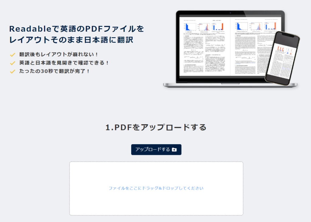 Readableの圧倒的なすごさは、PDFの美しいレイアウト(2段組みや図表の位置など)を一切崩さずに、英語と日本語を「見開き」で表示してくれる点です。